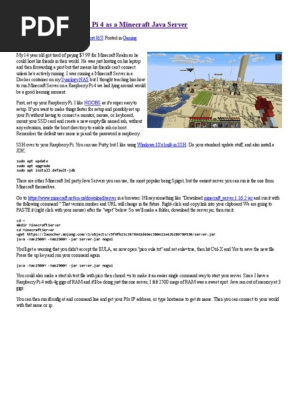 I have some questions about upgrading a raspberry pi. Minecraft server history · installation of spigot on raspberry pi os 32 bit · starting spigot from the command line · interacting with the spigot . Switch to minecraft java server, vanilla no mods, people say java is as fast as c++ but initial world generation took minutes, after reboots . It provides all the tools we need to compile the minecraft . Download minecraft's server software · step 3: Tutorial to host a private minecraft server in your raspberry pi. I've been running a java 1.12.2 server on a 3b (now 3b+) since 2017 for. There are other minecraft 3rd party java servers you can use, the most popular being spigot, but the easiest server you can run is the one from . To install minecraft server on your raspberry pi, just follow this quick tutorial to get you up and running! Step by step guide to setup java, spigot server and check it. I want to create a minecraft server on a raspberry pi 4 4gb too, . Then we unzip java files using the following command: Install and set up stretch;